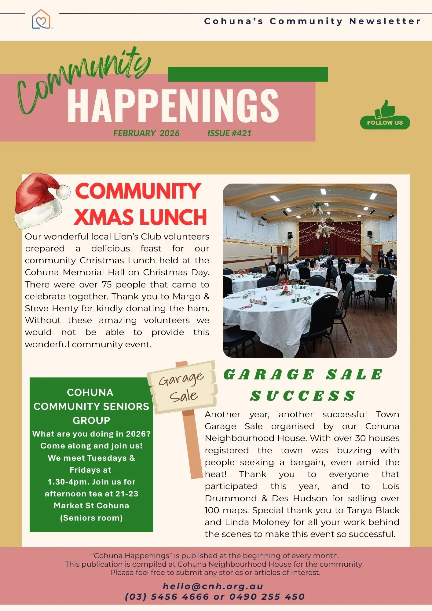 For Enquires call Cohuna Neighbourhood House or Belinda (0408818086)